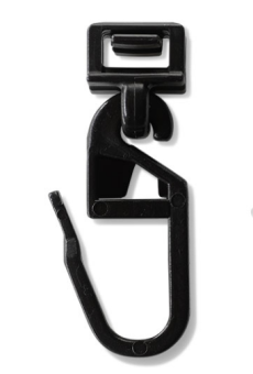 Clickgleiter HC32 für Aluminiumschienen 6 mm – schwarz mit langem Faltenhaken