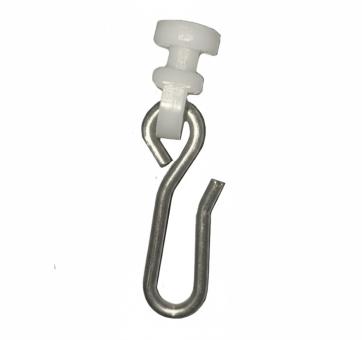 Abmessungen: Der Gleiter besteht aus stabilen Kunststoff ø9 mm Gleiter für Vorhangschienen mit einem 6 mm Laufkanal und das Innenmaß sollte mindestens B10 / H 6 mm betragen. Der Haken ist aus Edelstahl mit einer Gesamtlänge von ca. 32 mm. Maß: Unterkante Schiene bis Unterkante Gleiterhaken ca. 38 mm
